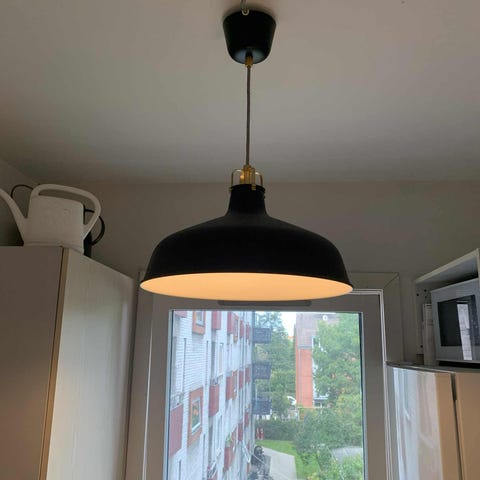 Loftlampe Reto guldfarvet med ny ledning. Diameter 37 cm.