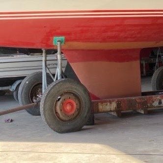 Ekstrem solid og velholdt varmgalvaniseret bådvogn brugt til 3.5 ton motorsejler. Tre træ-støttepunkter til kølen, disse udskiftet for få år siden, afstand mellem forreste og bagerste støttepunkt er 2.55 meter. Monteret med jernbanehjul, afstand fra midt hjul til midt hjul er 1.65 meter. Justerbare stivere, der kan justeres fra 2.5 - 3.5 meter. Alle vantskruer og øvrige bevægelige dele er smurt hvert år forår og efterår. Vognen har altid været placeret på klodselag. Forrest monteret solid krog der kan tilkobles et spil. NY PRIS