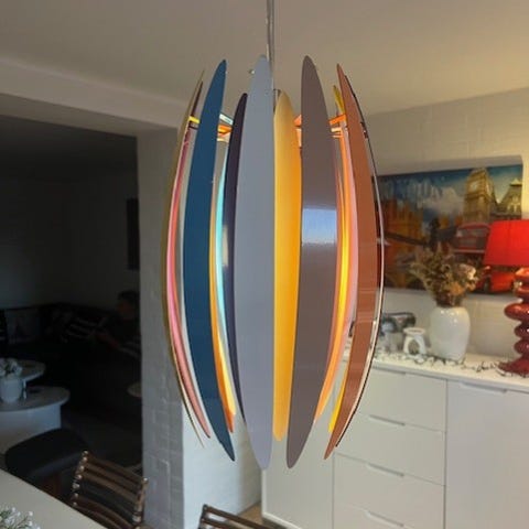 Smuk loftslampe i “bronze” med kugler. Giver et fantastisk godt lys. Mangler en enkelt kugle, som man knap bemærker.