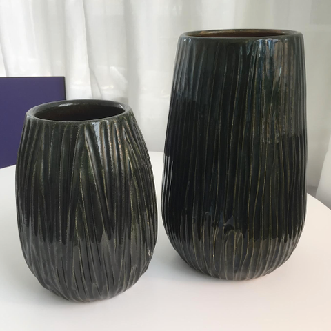 Vase fra 1960’erne Den har et specielt og ikke ens udseende. Den er ret tung. Højde 21 cm.