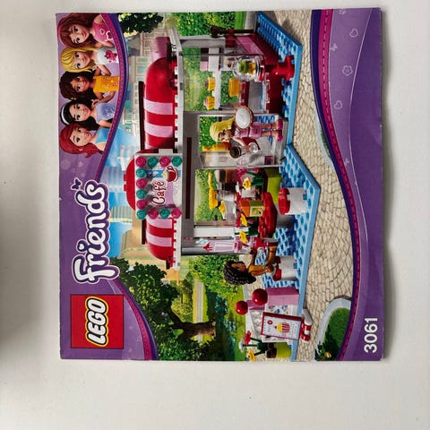LEGO Friends Legetøj Sandkasse med figur og tilbehør. Indeholder en LEGO-figur, sandkasse-elementer, spand, skovl og andre små tilbehørsdele. Farver inkluderer lyserød, lilla, orange og beige. Egnet til børn og samlere.
