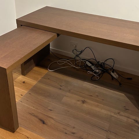 Todelt Ikea bord og benbukke. Se stand på billeder og læs teksten :-)