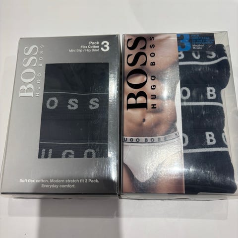 6 par HUGO BOSS trusser, st. S, 1 hvid, 1 grå og 4 sorte. Et par har muligvis været brugt (er vasket), men passede ikke den unge mand. Sælges samlet til den angivne pris.