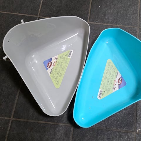 Har et kanin toilet, som min kanin ikke ønsker at bruge blev sat i da jeg fik ham hjem og taget ud i gen, da jeg skiftede bund første gang