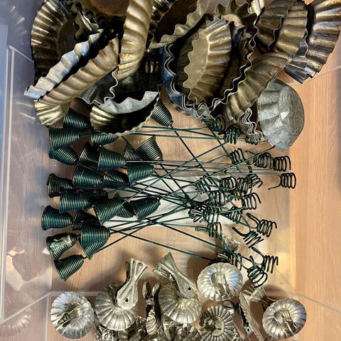 Her sælges 24 gamle linseforme / bageforme i metal.