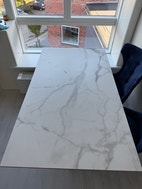 Hej jeg sælger dette keramik spisebord som jeg fik købt for 2 år siden. Jeg købte det for 4000kr dengang. Jeg er flyttet til en lejlighed hvor spisebordet er for stort til køkkenet. Bordet er knap nok blevet brugt da jeg har boet i kolonihave meste af tiden. Bredden på bordet er 90cm og længden er 160cm.
