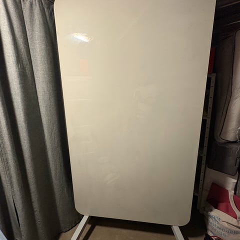 Jeg sælger en Lintex Mood Mobile glastavle 65x195cm Frank, grågrøn som har været brugt til almindeligt kontorbrug i mindre it konsulenthus.