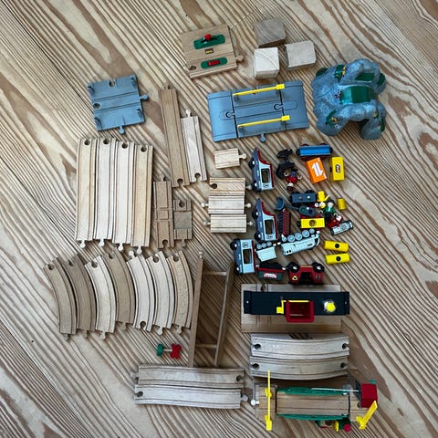 Togsættet med 24 dele indeholder det populære store batteridrevne lokomotiv – med lygter og manuelle knapper til "fuld fart frem", bakfunktion og frihjul indstilling, så toget kan køre uden batteri.