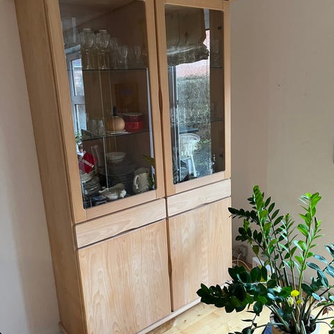 Vitrineskab i sæbebehandlet bøg.