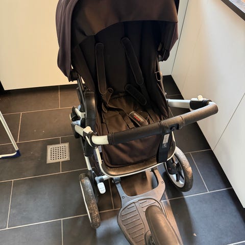 Bugaboo barnevogn i sort farve med robust stel og justerbart håndtag. Designet til komfort og funktionalitet til børn. Klapvognsdelen er godt brugt. Barnevognsdelen er kun brugt nogle måneder.