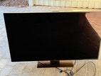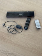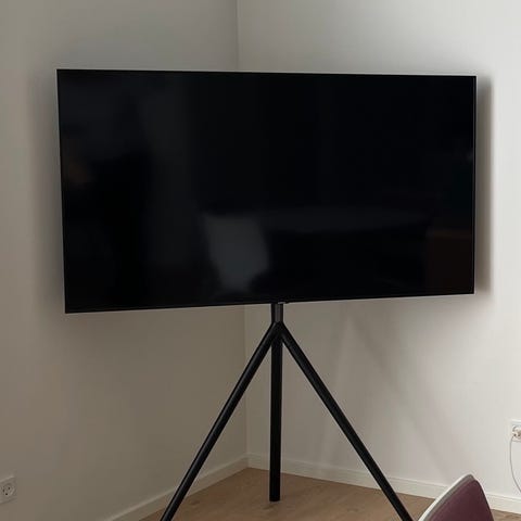 Samsung UHD TV mærke UE55F9005 LED T2 B inklusive fjernbetjeninger og kabler. TV'et er en flad skærm og standard tilslutninger bagpå.