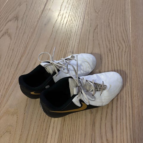 Nike Phantom fodboldstøvler i grå med pink detaljer. Støvlerne har snørelukning og er designet til brug på græsbaner. Størrelse 38