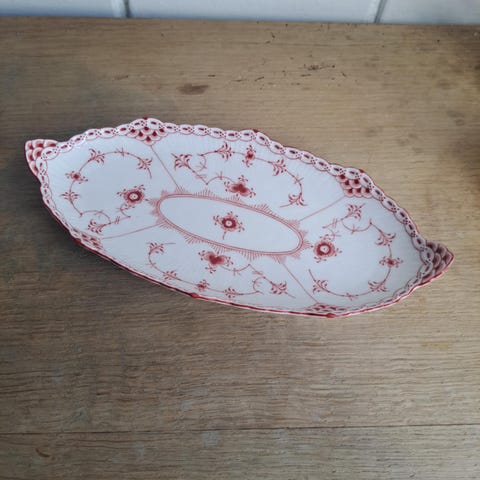 Ovalt fad muselmalet i dobbelt blonde blå/hvid serie 1147 købes.