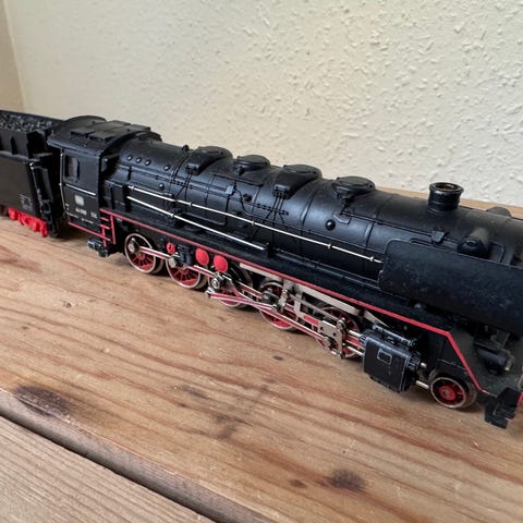 Flot velkørende digitalt damplokomotiv BR 50 fra Märklin. Det er digitalt (Delta) og kører lige nu på adresse 50. Det har få brugsspor og er forberedt til røgindsats. Det ligger i den originale kasse med servicehæfte. Plastindlægget i kassen er defekt. Ja til mobile pay og sender gerne.
