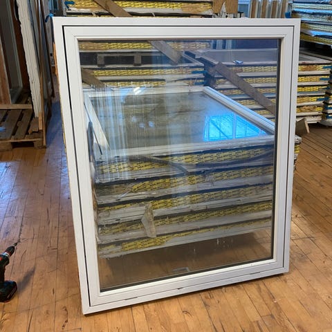 Vende-vindue 117x117cm i træ/alu med 2-lags energiruder. Produceret af Velfac. I god stand med en enkelt skramme. Dimension B:117 X H:117 X D:12,5cm Se evt. lignende artikler her: https://kingogenbrug.biz/vare/topstyret-vindue-95x112cm/