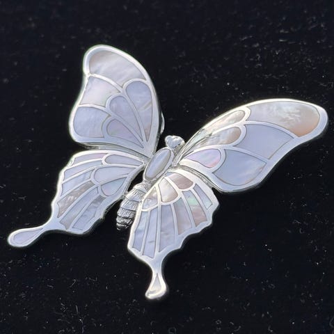 Smukt sølvvedhæng formet som en guldsmed (dragonfly), med vinger fyldt med turkis sten.