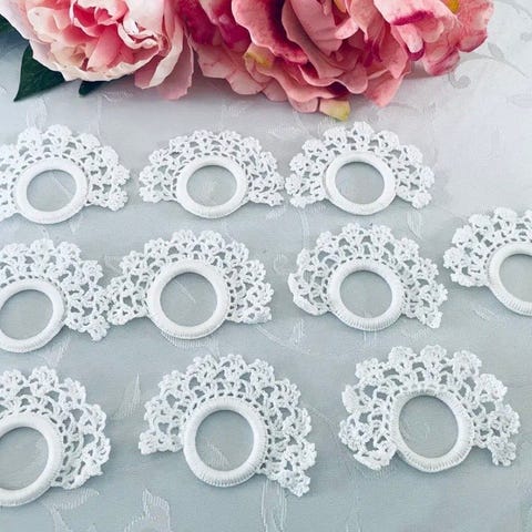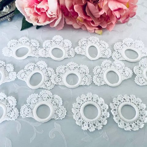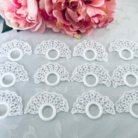 Håndarbejde, 12 unikke servietringe i græskar farve.
