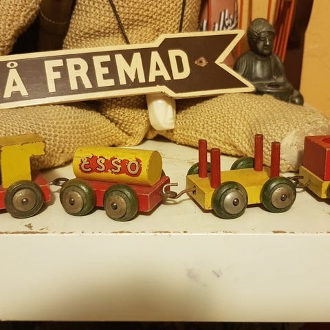 1 stk Modeltog i Træ Tekno Lokomotiv og vogn