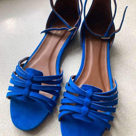 Sort kalveskinds sandal, størrelse 39. Sandalerne har et elegant design med krydsede remme og en lav hæl. De er desværre købt en størrelse for stor.