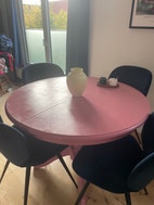 Bordet er 105 cm og med tillægsplade får du 48 cm ekstra.
