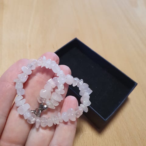 Helt nyt krystal armbånd, rosakvarts med forgyldte mellemperler