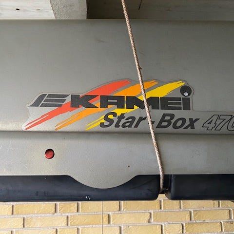 KAMEI SKI TAGBOKS: Farve GRÅ - B. 70cm - L. 230cm - H. 40cm. - Har altid hængt inde i skur, kun brugt ved skiferie.