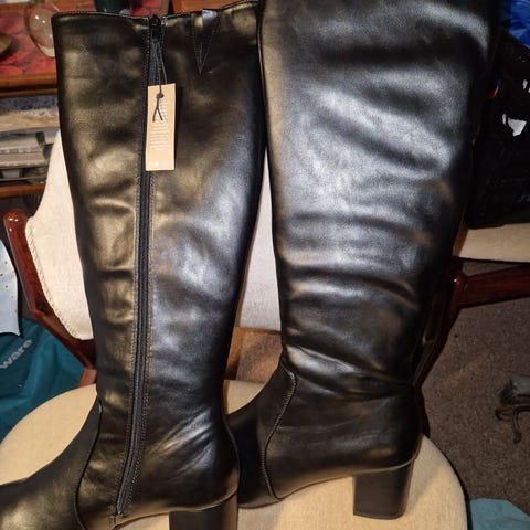 Flotte støvler i imiteret skind fra Anna Field. Str 41. Med kilehæl. I sort farve. Ubrugt og nye i original emballage mv.