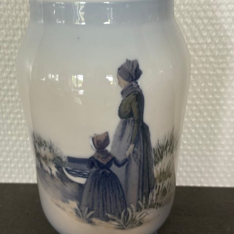 Vase med motiv af Fanøpiger. Mor og barn ved stranden.