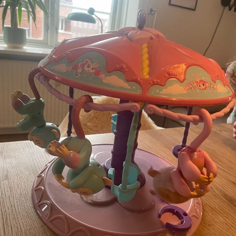 Interaktiv ugle. lyserød med base i blå rede, der kan tilsluttes pc /computer. Tilsluttet er uglen bevægelig, har lysende øjne mv. Har desværre ingen brugsanvisning. Pris sat derefter.