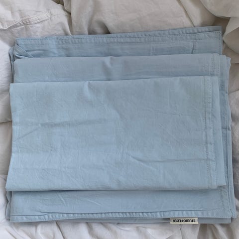 Cotton Percale-kollektionen er fremstillet af 100% økologisk bomuld. Stoffet har et let krøl og en åndbar, sprød overflade, der giver en naturlig følelse.