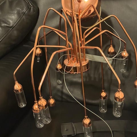 Lampen er helt ny, og har kun været åbnet for at se om den passede til vores spisebord, hvilket den desværre ikke gjorde. Der er nu gået for lang tid inden jeg fik reageret, så kan nu ikke returnere den længere.