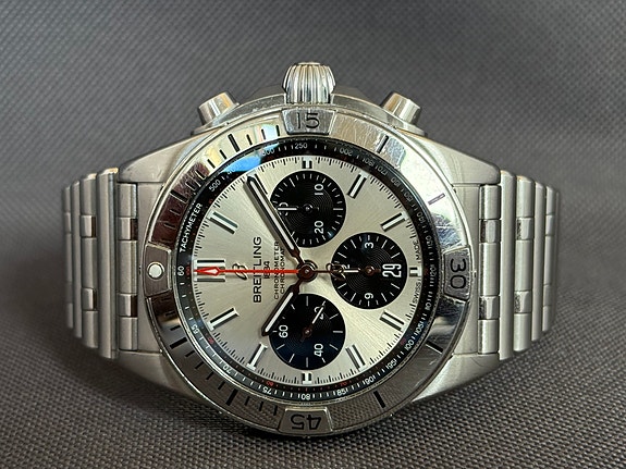 Super flot Chronograph fra Hublot’s Big Bang serie, uret måler 41mm og urkassen er lavet i stål og keramik. Bag den gennemsigtige safir bagkasse kan man se det flotte HUB2894 urværk som yder 42 timers gangreserve, vandtæt til 100m.