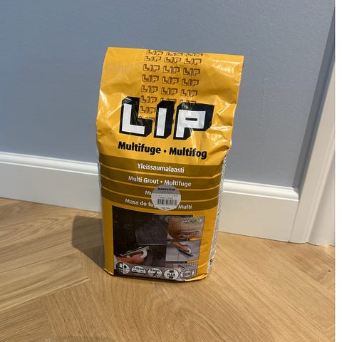 Lysegrå fugemasse til brug ved opsætning af fx badeværelsefliser.
