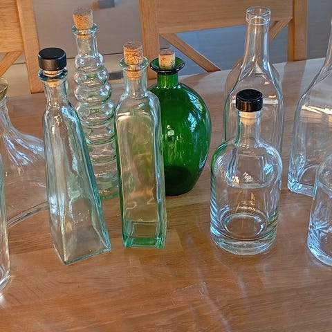 Forskellige flasker/karfler til opbevaring af snaps/likør m.m.