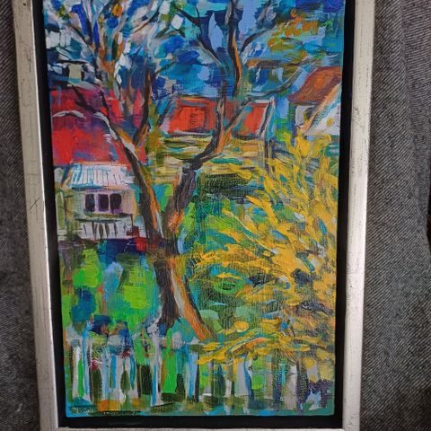 Ret fint naturalistisk maleri, som forestiller en rigtigt liebhavervilla / hovedhus på et gods etc. Der er desværre et hul i maleriet og jeg ved ikke hvem JG er.