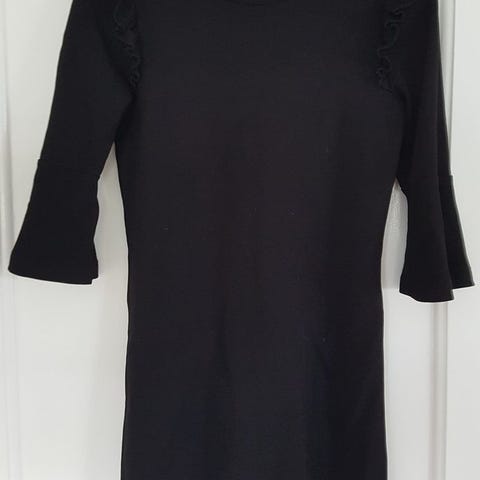 Stribet kjole. Str L. Påsyede knapper på skulderen . Brystmål 2x52 cm. Lidt kraftig materiale men ingen oplysninger i kjolen