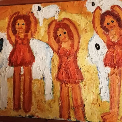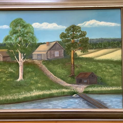 Et maleri af blomster i en vase. Maleriet er udført på lærred.