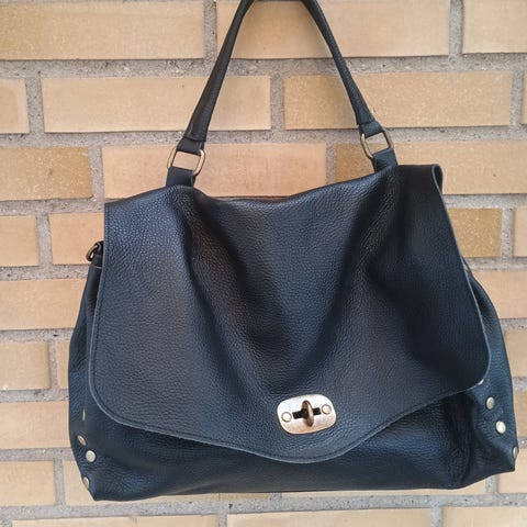 Flot bordeaux læder taske med god opbevarings plads og mange lommer, inklusiv magnet lukninger