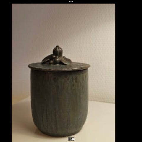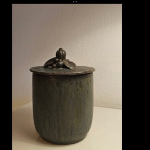 En meget smuk Arne Bang krukke med patineret Kobberlåg.