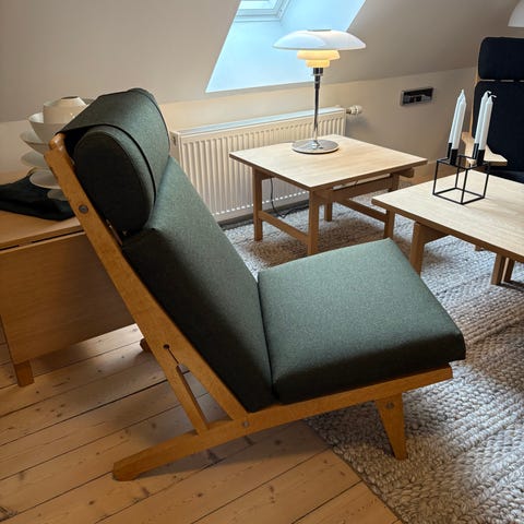 Hans J. Wegner GE370 lænestol i eg med nyt hyndesæt