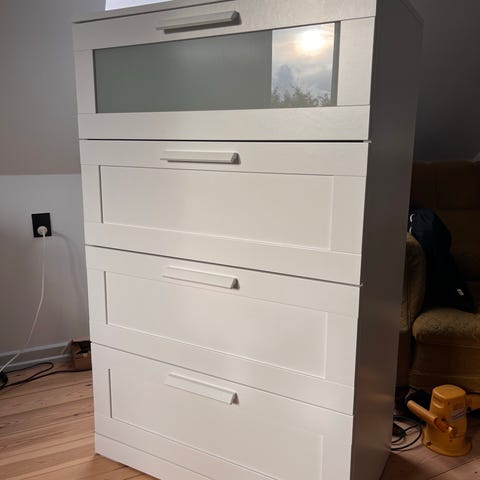 Link til den hvide som selges nu: https://www.ikea.com/dk/da/p/brimnes-kommode-4-skuffer-hvid-frostet-glas-90392046/