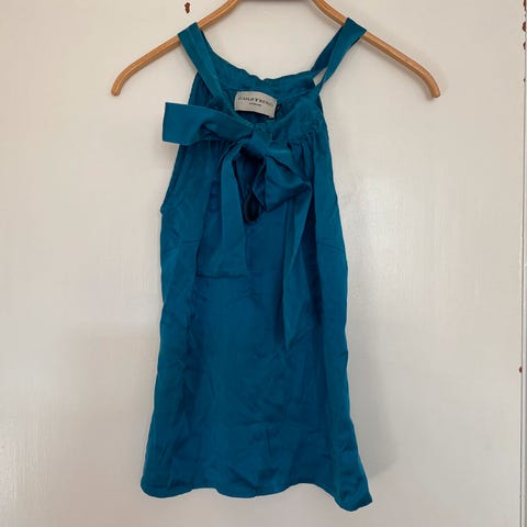 Super sød top i silke fra Ravn. Rosa/brun