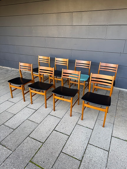 8 par - 16 stole i teaktræ + teak / bejdset bøg og egetræ