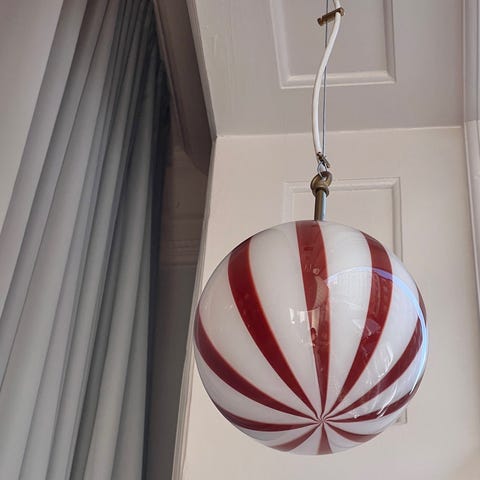 Candy ceiling lamp Auburn/white mouth-blown glass, D 30 cmBrass canopy, Comes with adjustable mounting/wireNew condition, Made in ItalyThe ceiling lamp is new, made in Italy by a Murano master in original forms and in mouth-blown glass.*Please be aware that all lamps are handmade and unique and can therefore differ slightly from the one in the photo.The mouth-blown glass can have small imperfections and unique characteristics, e.g. air bubbles or variations in patterns and shapes etc.