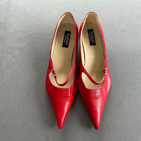 Fin rød pumps brugt en gang, men nogle skrammer på den ene hæl