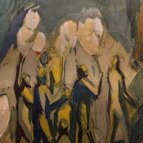 Flot tryk - Kunstner: Jens Urup - Motiv: Lindevangskirkens korvæg, udkast til fresko - Signeret og dateret i bly: Jens Urup, 1951 - 1/10 del størrelse