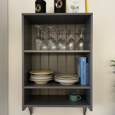 Gammel tallerkenhylde. Perfekt til bøger og tidsskrifter.