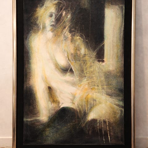 Litografi med passepartout og trykt på L ´Aches papir og indrammet med dybblå alu. ramme.