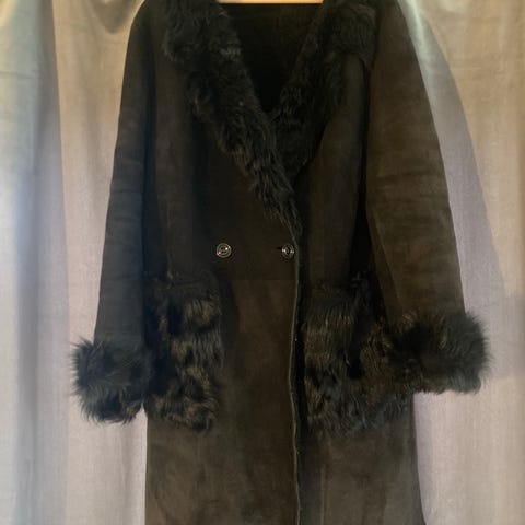 Rulams frakke. I beige. Vendbar. 2500kr. Svarende til en str 38