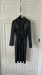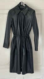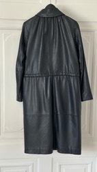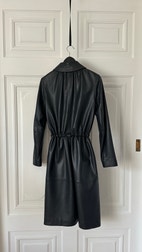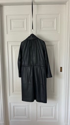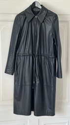 Designers Remix frakke til kvinder i størrelse M. Fremstillet i navy læder / blødt skind med lange ærmer og krave. Frakken har snøre i taljen for justerbar pasform og en glat overflade. Velegnet til brug som yderbeklædning i køligere vejr.